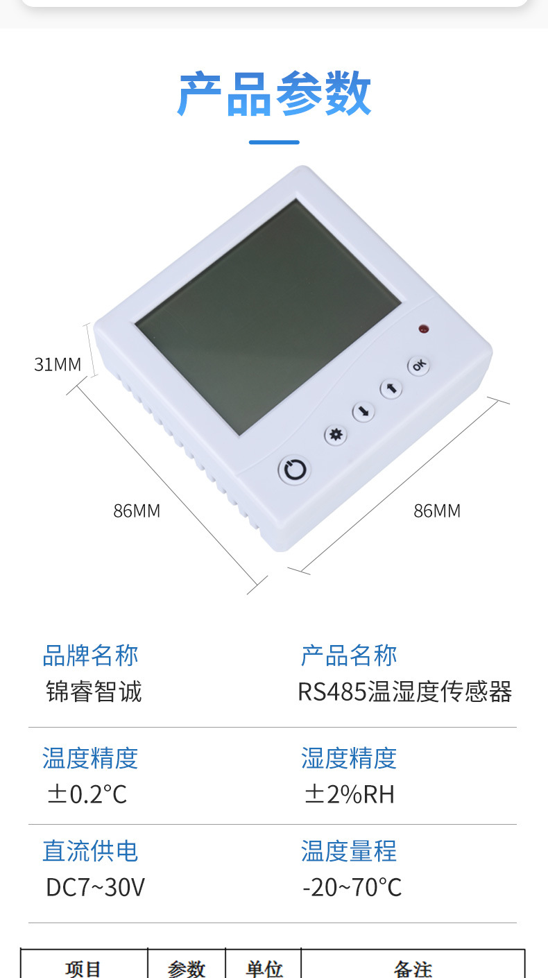 该传感器广泛适用于厂房、实验室、公共场所、机房等需要温湿度测量和控制的场所,24 小时监测温湿度的数据。安全,外观美观,安装方便。